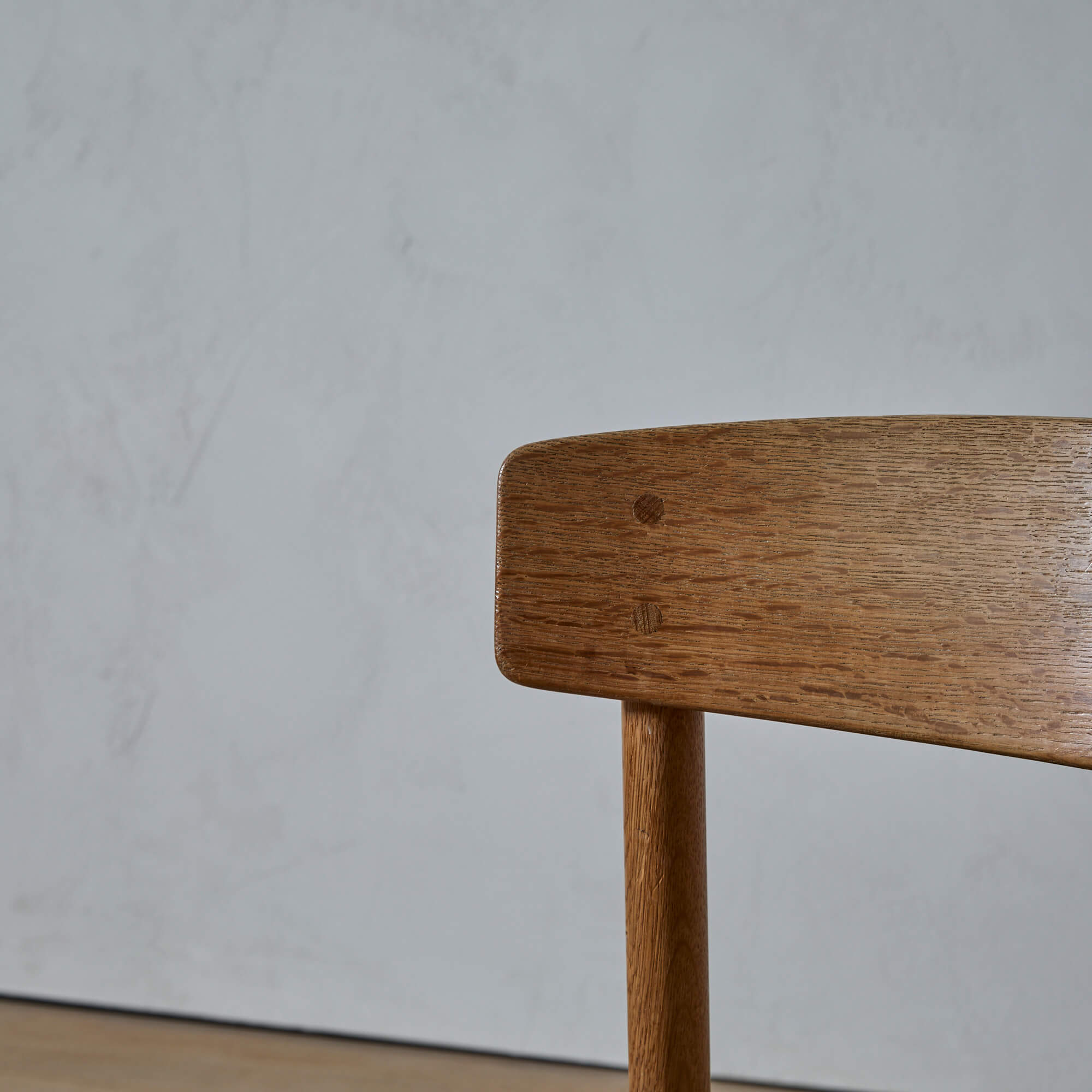 After studying under Kaare Klint, Børge Mogensen became one of the founding designers of Fredericia in Denmark, and helped to bring Danish modern design to global attention. The “Folkestolen” or “The People’s Chair” is one of our favorites of his creations. Mogensen wanted to make a chair that could be used by everyone, focusing on comfort and durability without sacrificing aesthetic appeal. This early set is in wonderful condition, made from solid oak with original handwoven paper cord seats.