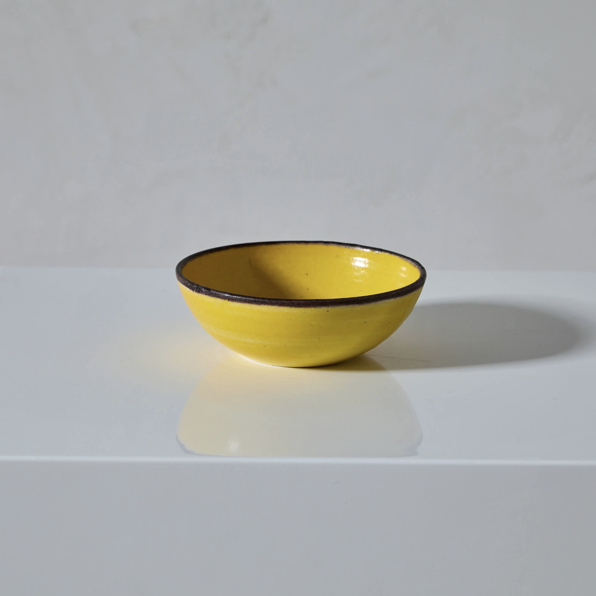 With its saturated sunflower yellow and dark-tipped rim, this bowl is a beautiful statement of Gambone’s craft in the 1960s.