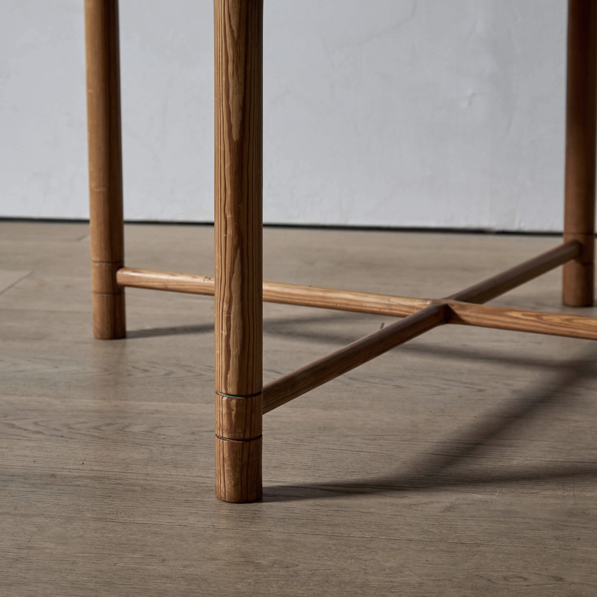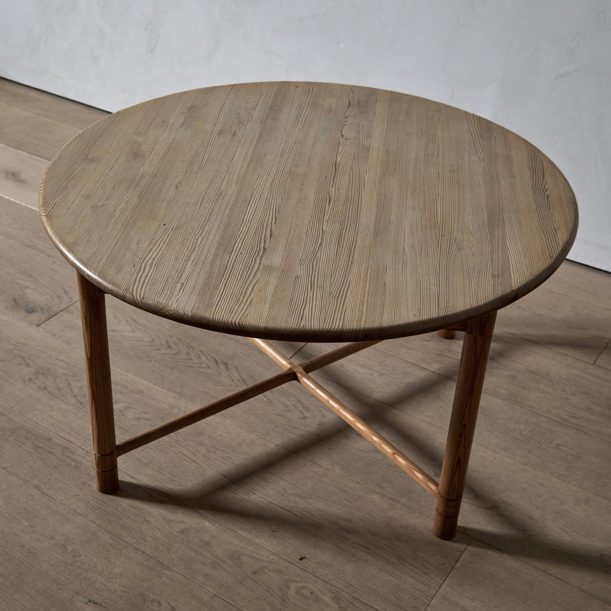 This table functions beautifully as a low center table, with a generous surface area for a sculptural vessel or vase. Made of solid pine, with simple elegant joinery. As far as we have been able to ascertain, it is one-of-a-kind.