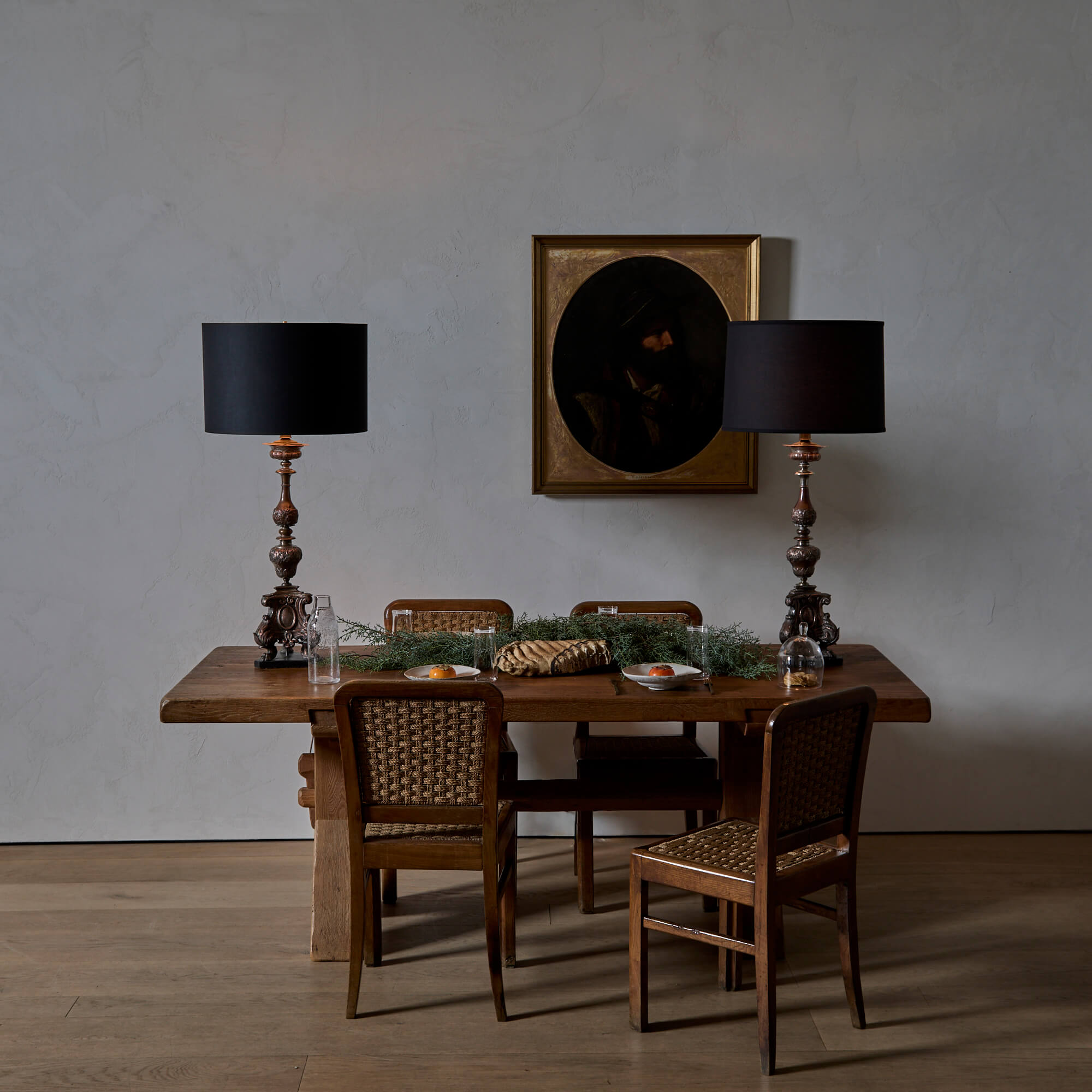 French Oak and Woven Seagrass Dining Chairs