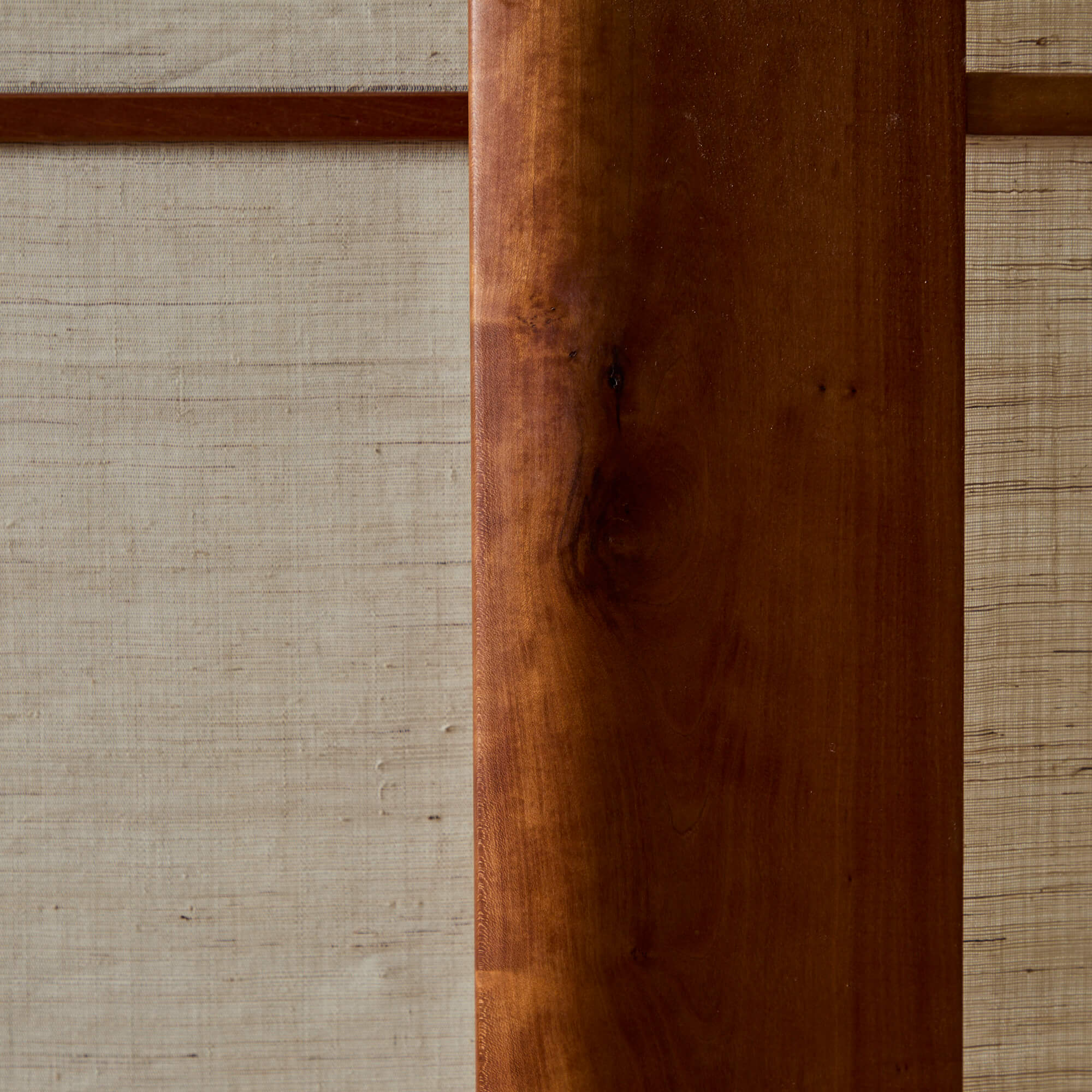Mahogany, nettle fiber cloth, leather