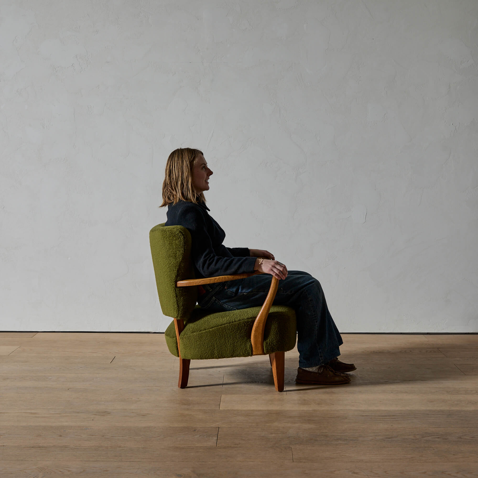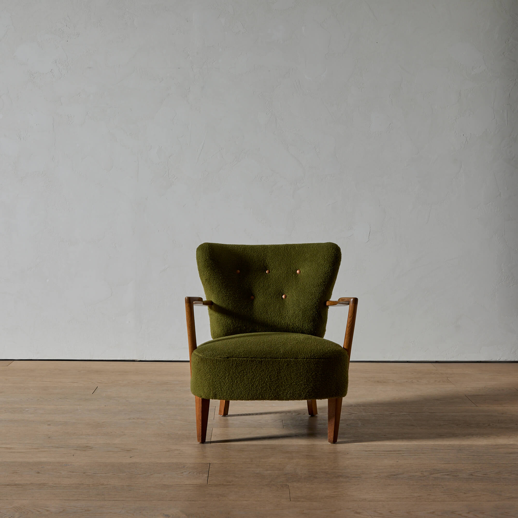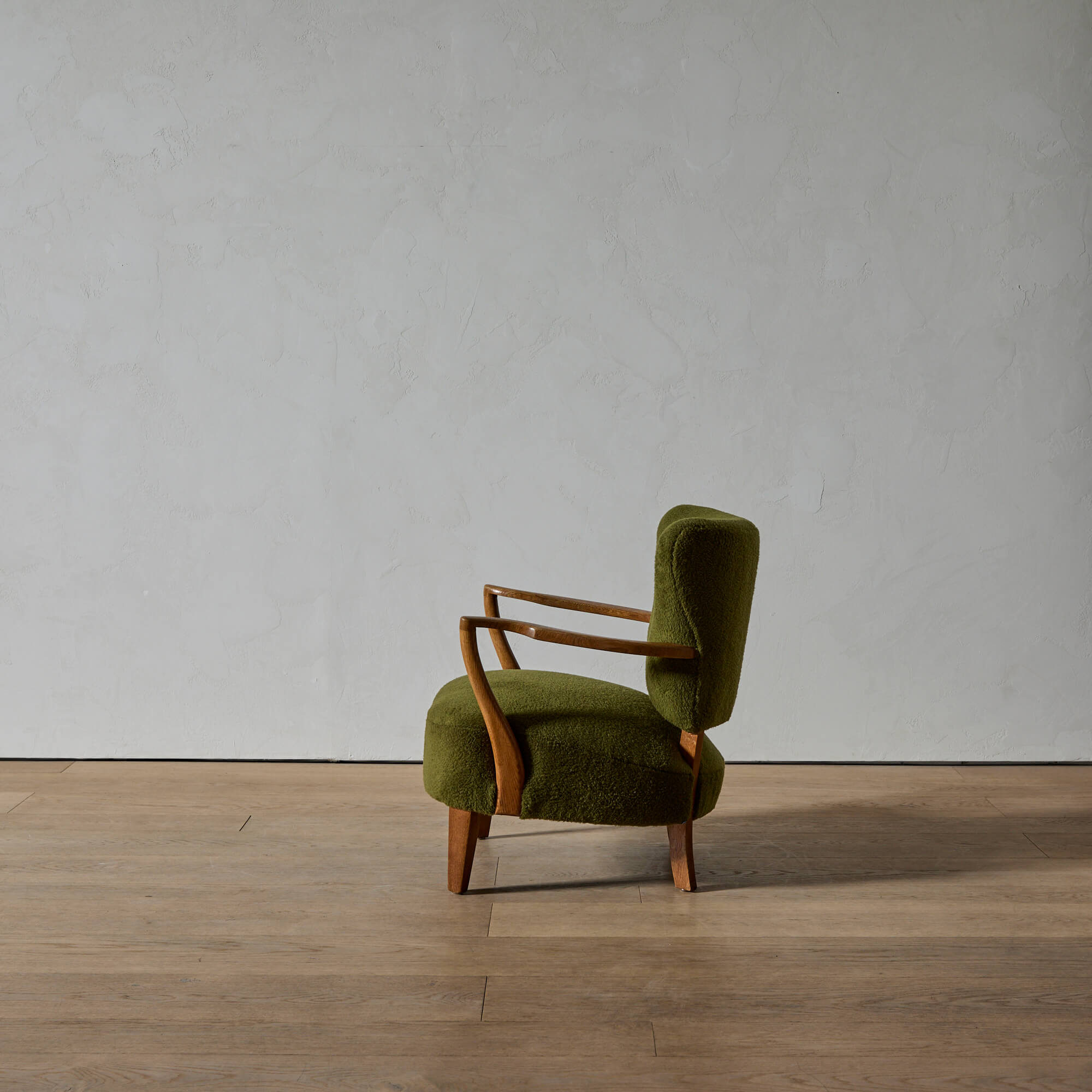Otto Schulz was an architect and designer born in Germany, who moved to Sweden and founded in Gothenburg what quickly became one of Sweden’s most prestigious interior design shops–-Boet, which operated from 1920-1950. During that time, he produced a beautiful catalog of designs, including a lounge chair with a floating back and low seat, an overall sense of balance and softened geometry.