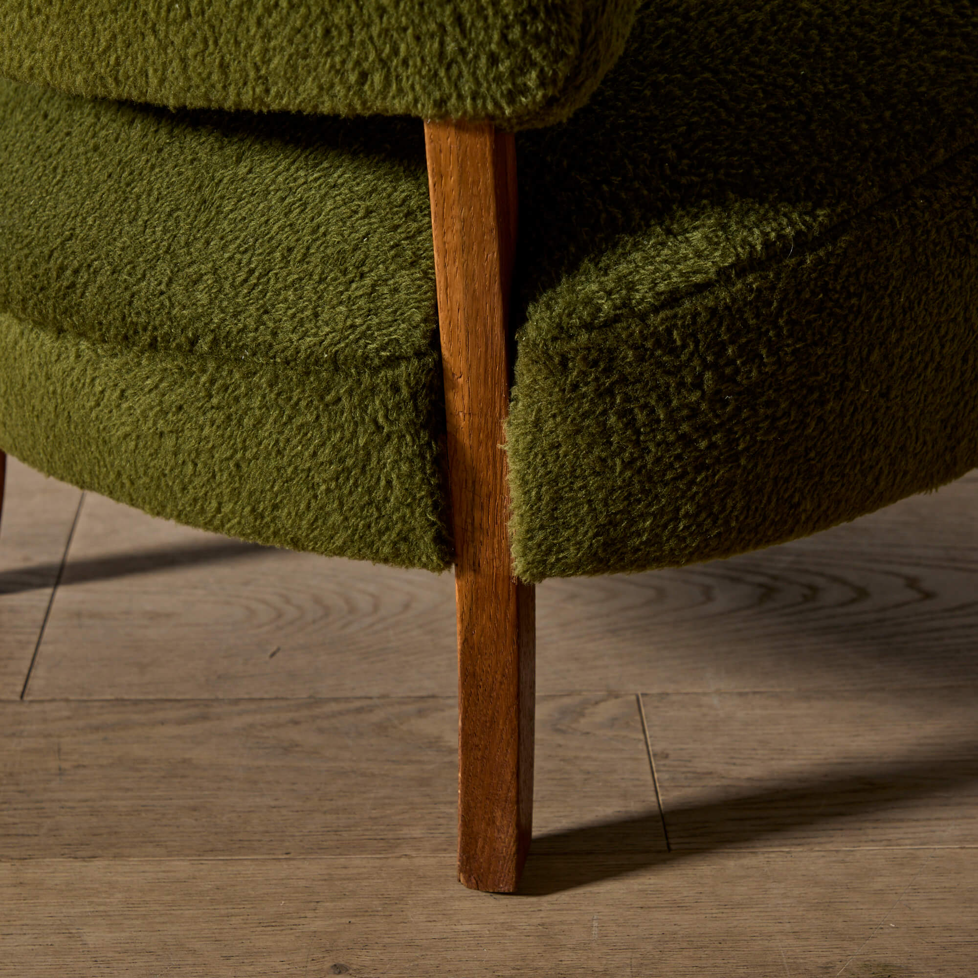 This one has been fully restored and recovered in a plush teddy mohair and leather buttons.